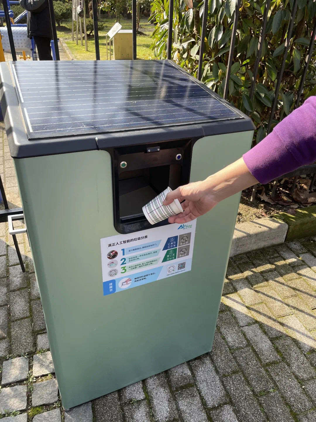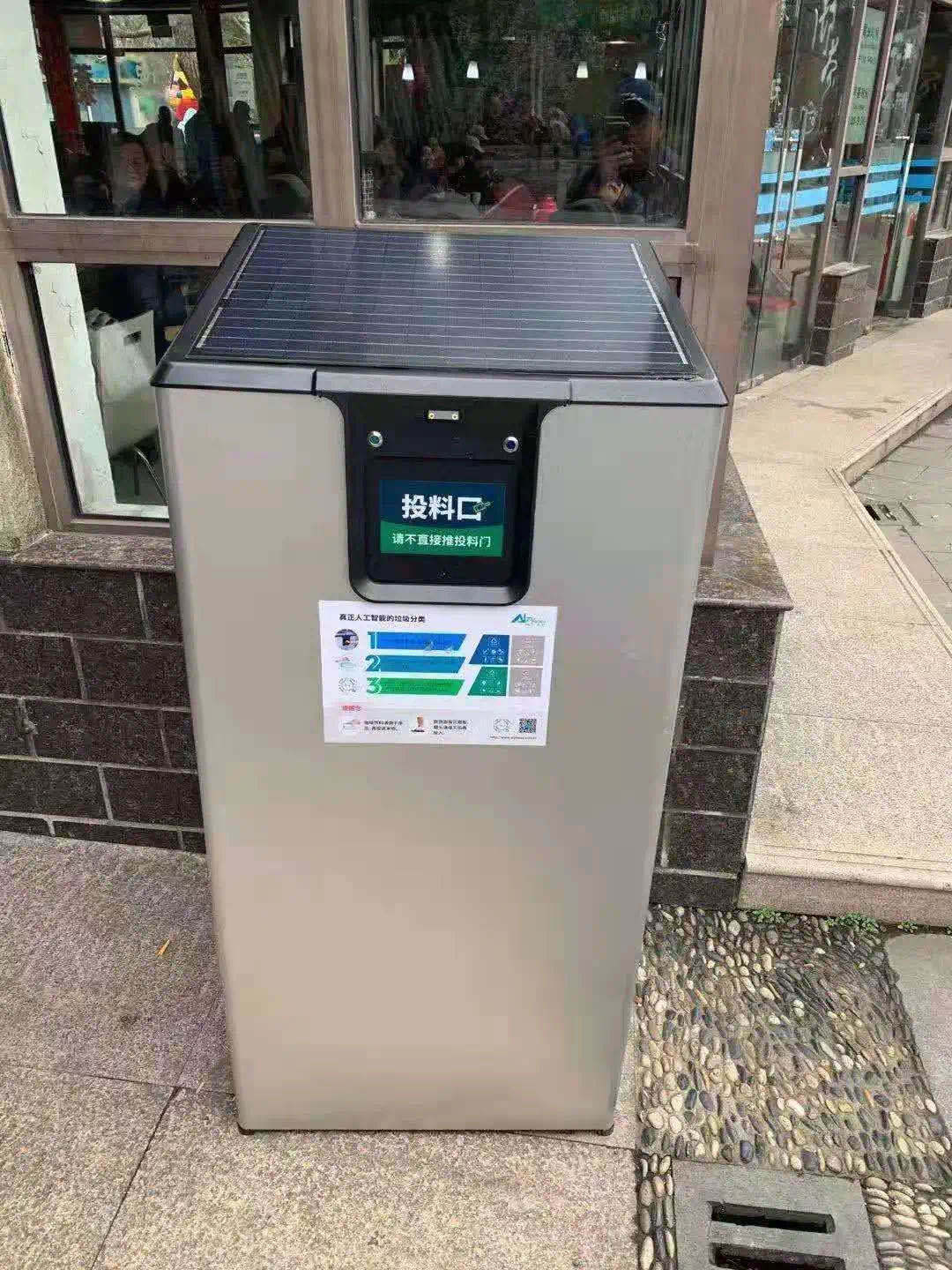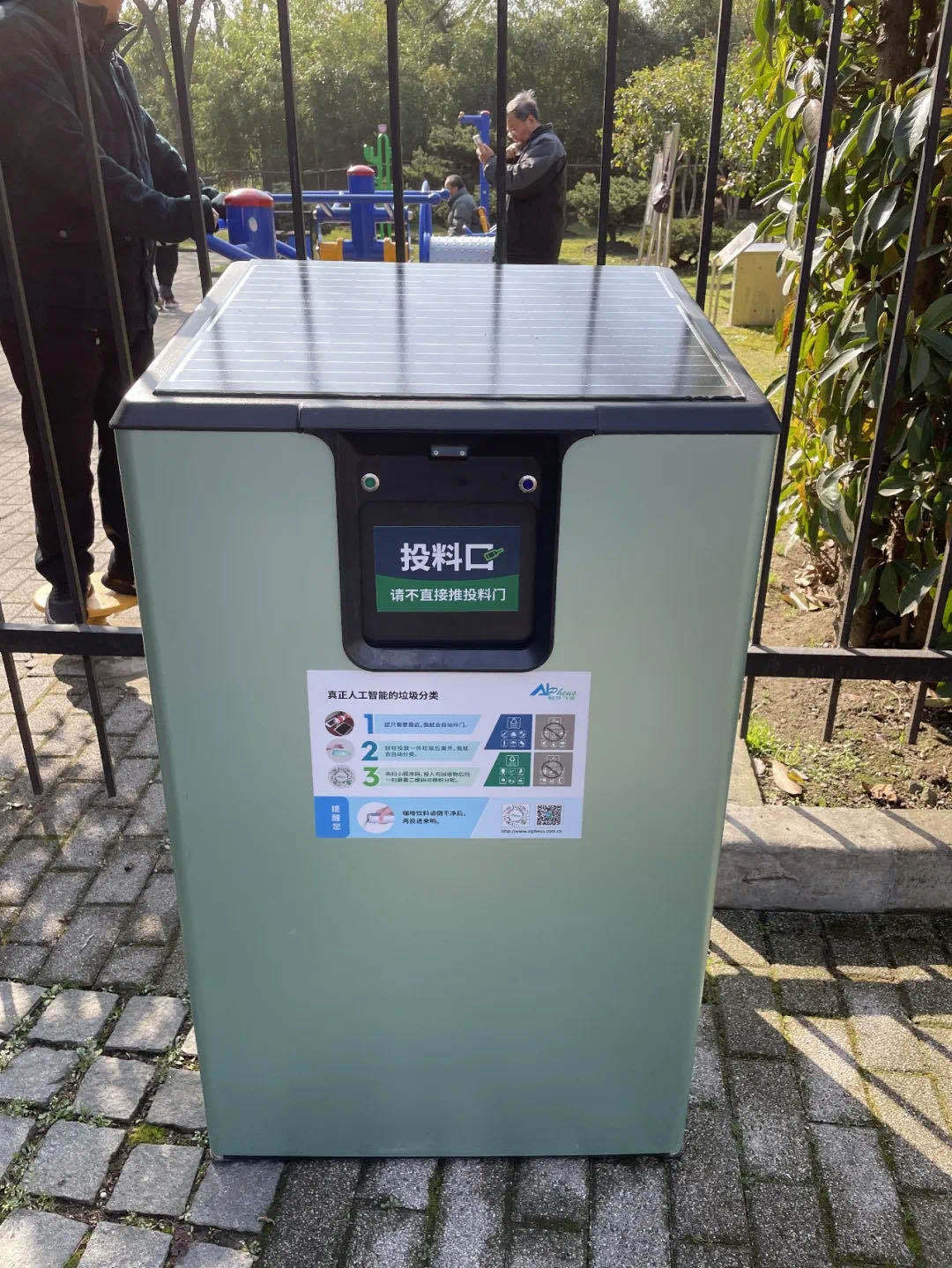 在人民公园茶室前,记者看到,这台智能垃圾桶体裁不大,像个“小冰箱”。不过,据工作人员介绍,它的功能可不少。太阳能充电、自动除臭、基础的人机互动等功能全都有,最重要的亮点,还在于它装载了新型的AI识别系统,能基于后台大数据,识别出游客丢弃的垃圾属于什么类型的垃圾,然后自行进行分类。