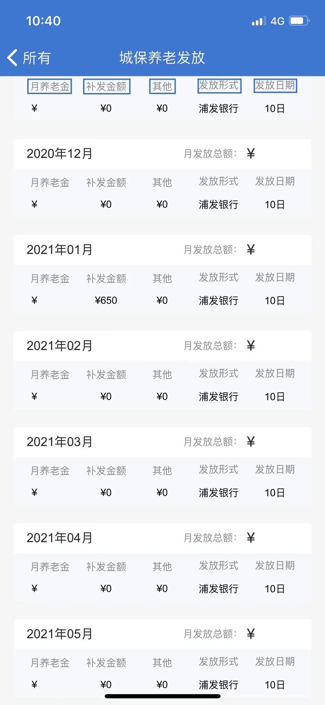 耐心等待几秒钟,马上就能浏览您的历月养老金发放明细啦!