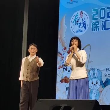 上海越剧院优秀青年演员郭茜云、俞景岚通过《天上掉下个林妹妹》和《红楼梦》读西厢片段的演绎展现了越剧才子佳人的经典场面,唯美的布景、优美的唱腔、生动的表演赢得了学生的阵阵掌声。