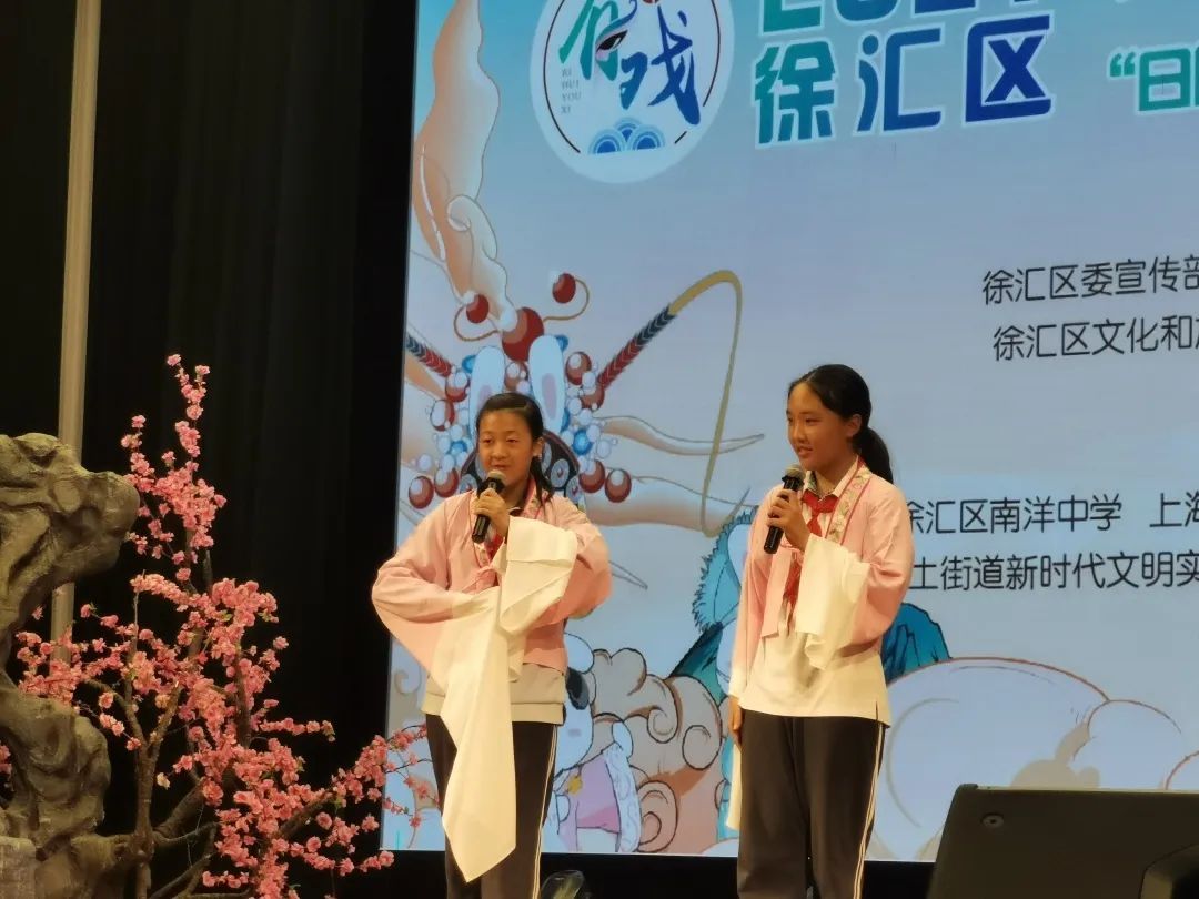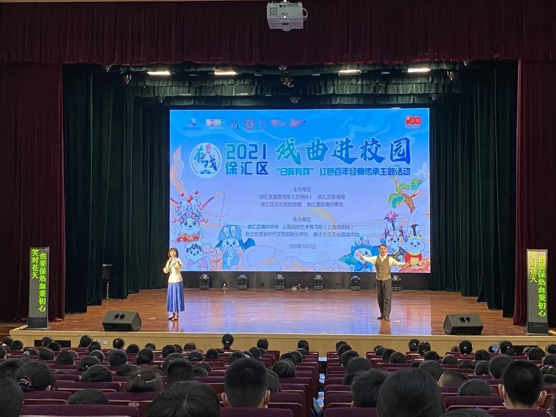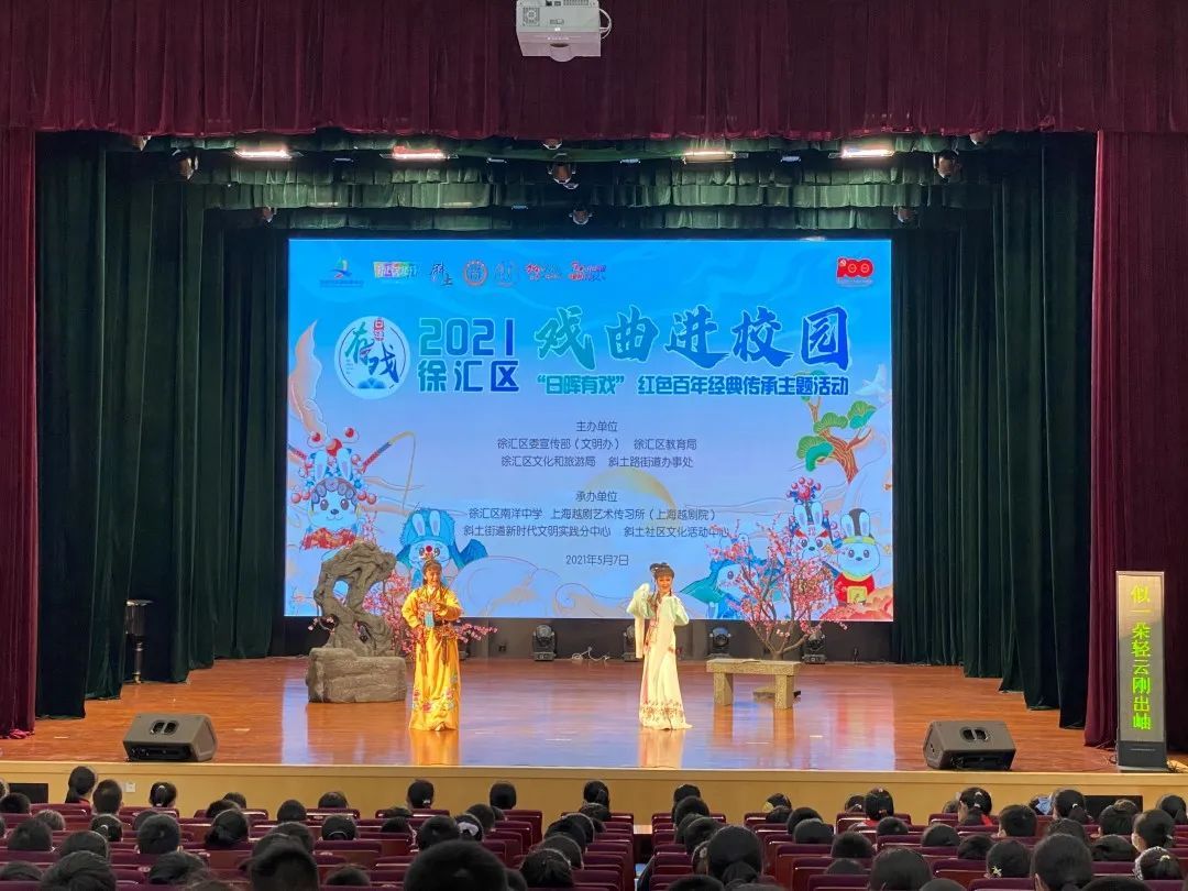 近日,在南洋中学植善堂礼堂举办了一场生动的新时代文明实践未成年人修身活动,通过“日晖有戏”戏曲进校园之红色百年经典传承主题活动,让青少年们在近距离感受戏曲文化魅力的同时感悟革命精神,传承革命薪火。
