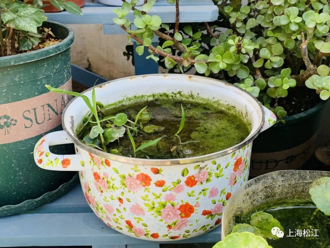 除了绿植和多肉,主人家还用圆盆种植了荷花,并且在院子里养了不少小金鱼。为了弥补鲜花易败的缺憾,主人家还装饰了不少仿真花,与绿植相映成趣,整体就像一个微型“小花园”。
