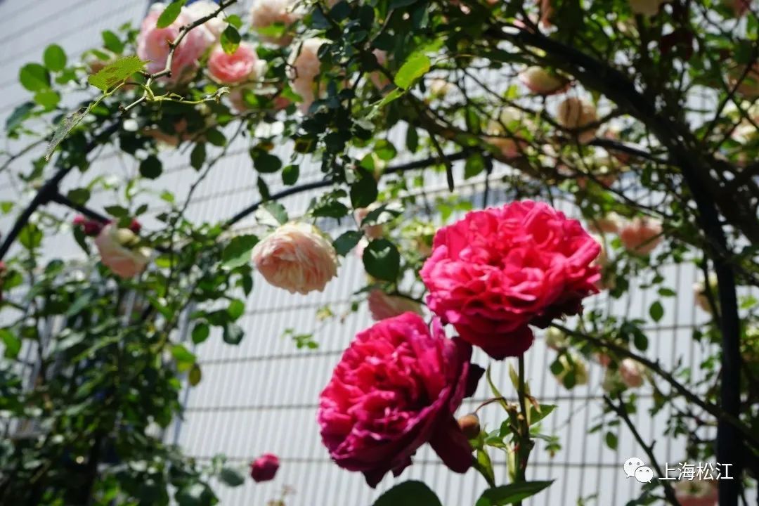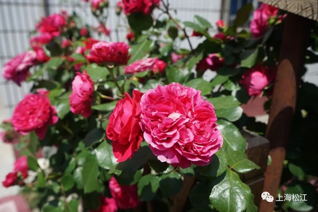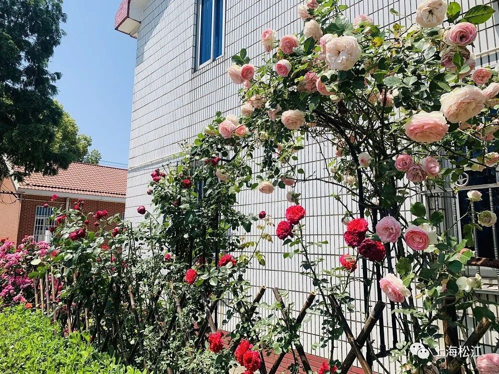 看到这院子便知道,庭院的主人是追求浪漫的,在篱笆之上,主人家还设计了一个圆形拱门,让鲜花围绕着拱门生长盛放。月季的花期较长,所以金阿姨家的院子可以一直美到十一月底哦。