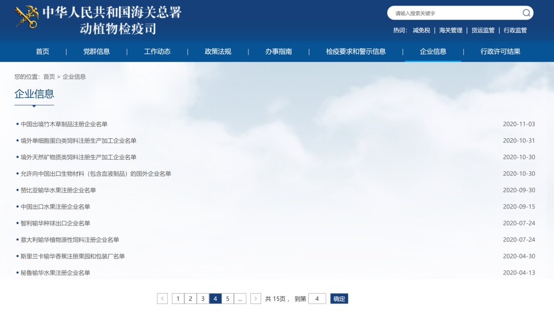 经注册的果园及包装厂信息,可通过海关总署网站(网址:http://www.customs.gov.cn/)→动植物检疫司→企业信息→中国出口水果注册企业名单查询。