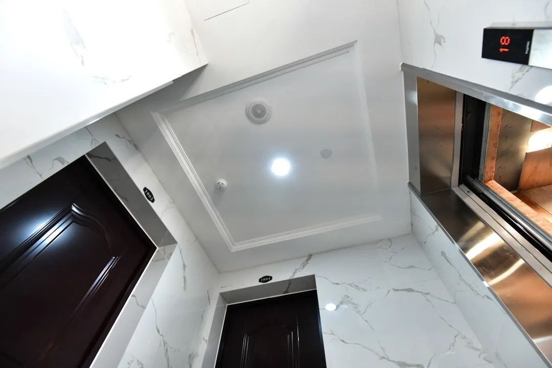 现场看到,每层楼的防火门、烟雾警报器、喇叭、喷淋器、感应灯等设施一应俱全。