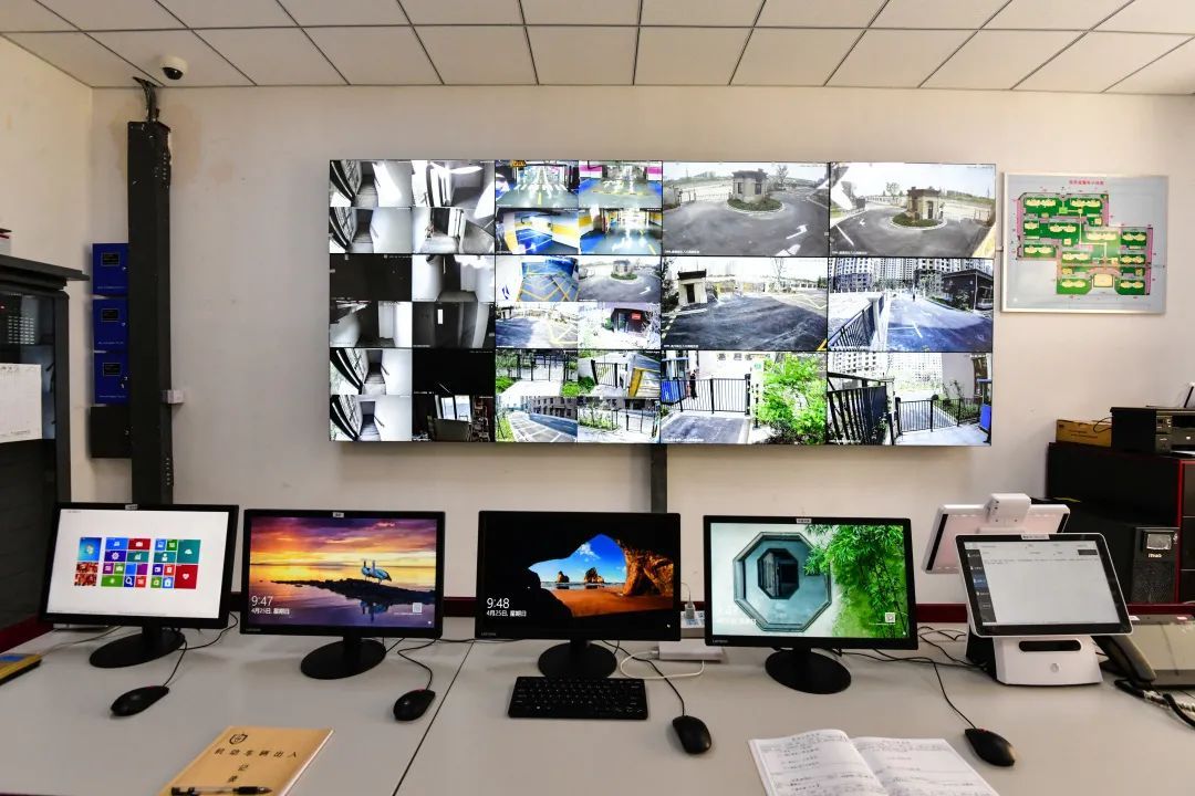 在小区管理方面,技防设施基本实现公共区域全覆盖。来到位于小区门口的一个房间,墙面上30块显示器组成的联勤联动系统基本实现“一屏观遍小区”,并设有双岗值守。
