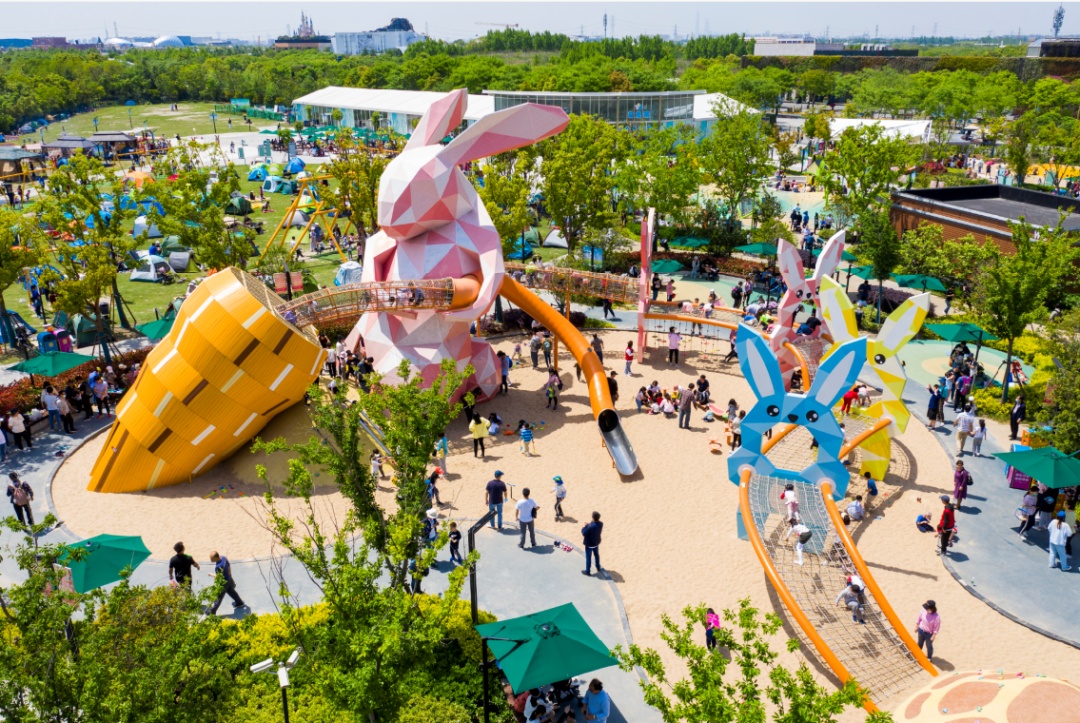 由景区正门主入口进入后右转,沿着深受萌娃喜爱的兔子拔萝卜、遗忘角、萌兔家、竞技场、探索湾等全套无动力游乐设施,一路带你体验“亲子、时尚、绿色、安全”的户外休闲时光,童趣无限让人流连忘返。