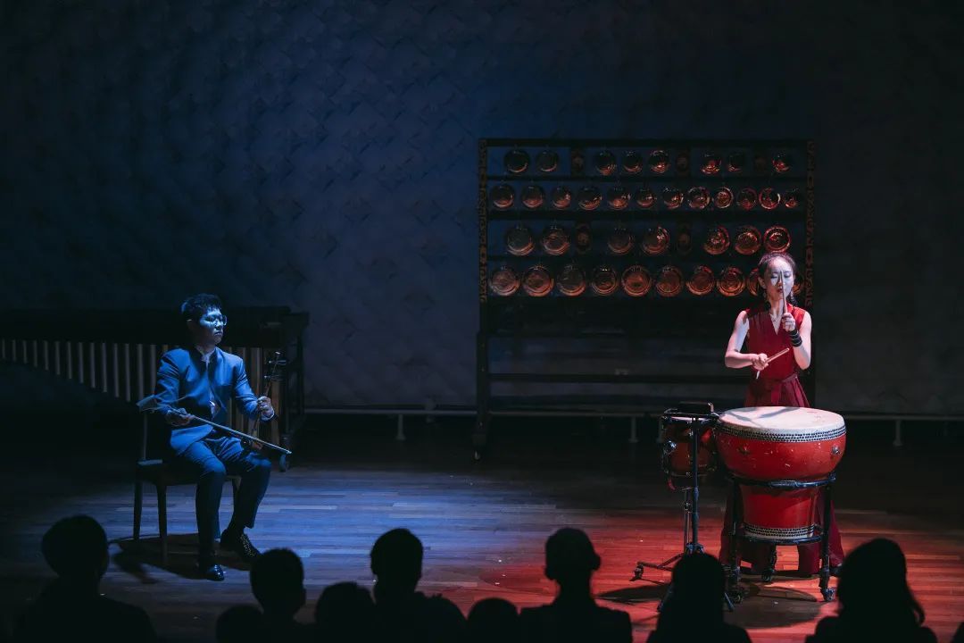 紧接着,绛州鼓乐《牛斗虎》与土家族打溜子《锦鸡出山》用打击乐丰富的表现形式及演奏技法,向大家展现了舞蹈、动物等生动的形象。