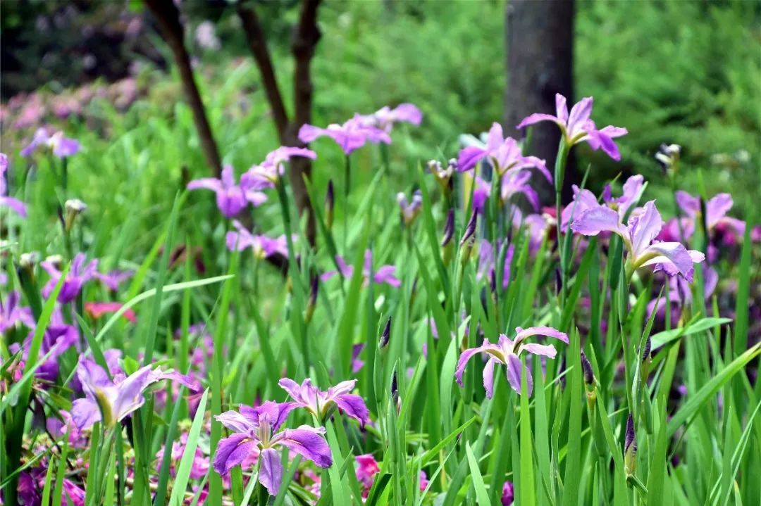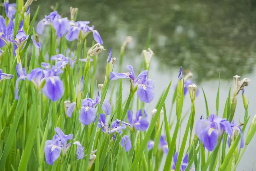 初夏的共青,共青森林公园河畔边铺开了一片片五彩缤纷的鸢尾花……白色、黄色、蓝色、红色、粉红、紫色等多种颜色的鸢尾花使共青蜿蜒曲折的河畔呈现出勃勃生机。
