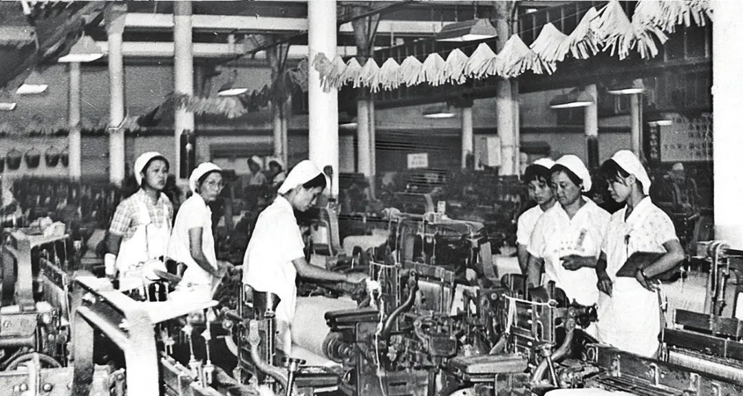 1980年代初嘉丰厂布机车间工作场景