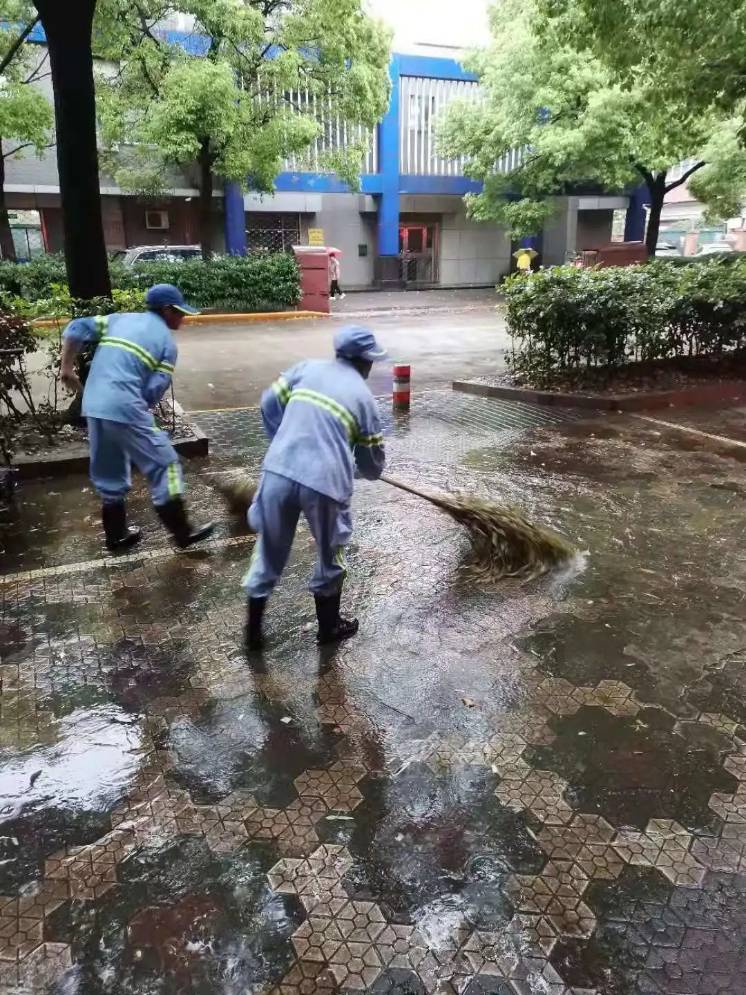 5月16日凌晨2点,上海发布暴雨、大风蓝色预警、雷电黄色预警,降雨量达到30-40毫米/小时。宝山区绿化市容局连夜启动雨天作业应急预案,及时开展道路排水作业清理路面积水,在宝山城区的大街小巷到处都有环卫一线职工在雨中,弯腰劳作的身影……