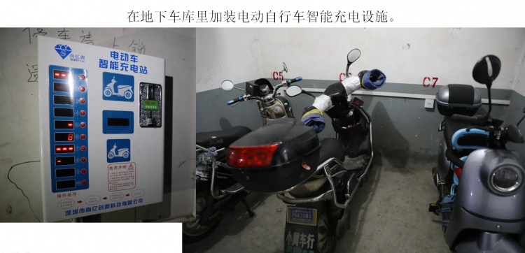 如今,在“电动车不入梯”的功能型党组织的推动下,小区大部分电动车进入了车库,有效避免消防安全隐患,清除了楼道堆物和电动车充电问题,保障居民人身财产安全。据统计,振东一居地下停车库停车数量从100辆增加到近1000辆。原本5个停车库安装了充电装置,后续将继续改造开放另外8个车库,以此来满足居民停车、充电需求。此外,考虑到老年人的使用需求,小区地面也搭建了有充电位置的车棚,每个车棚大约有20个充电位。