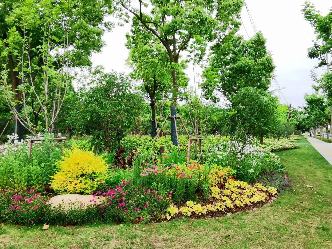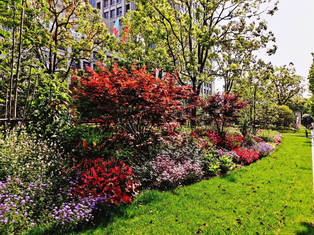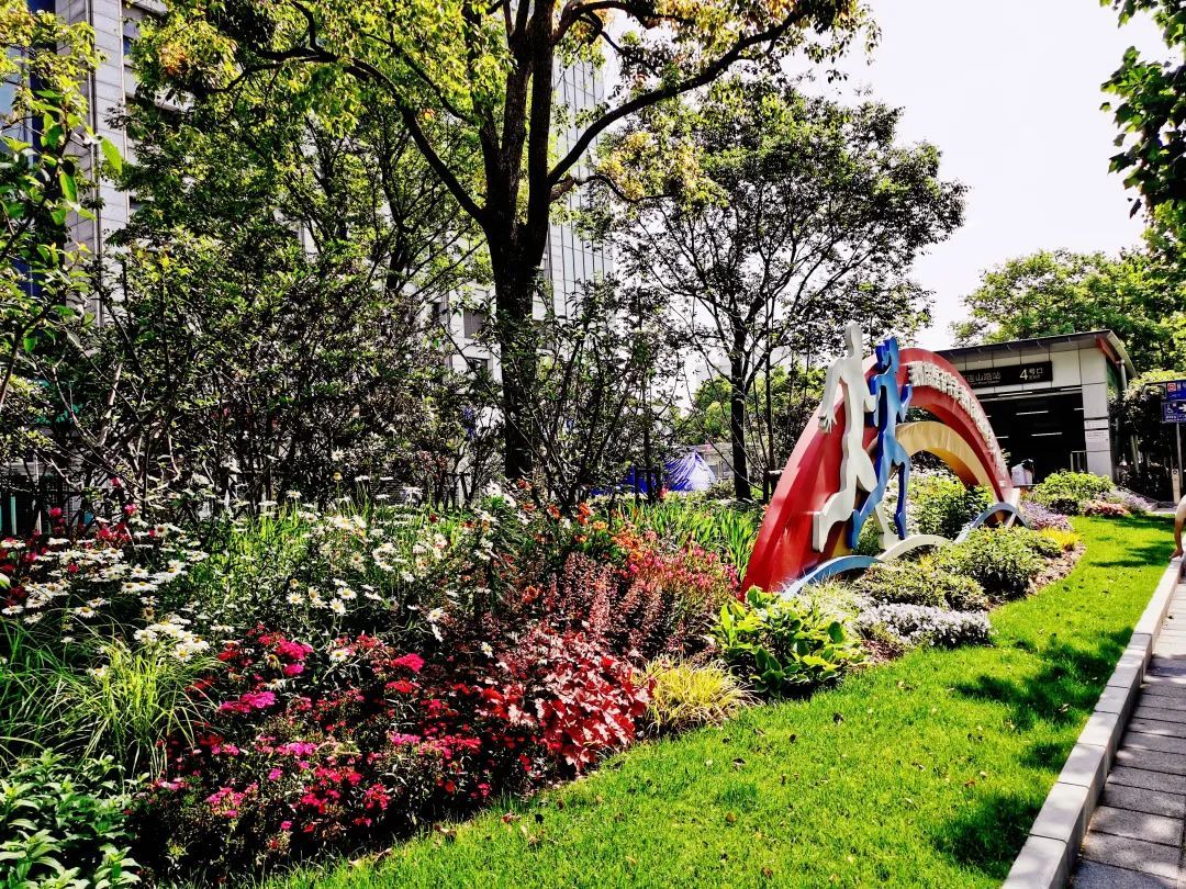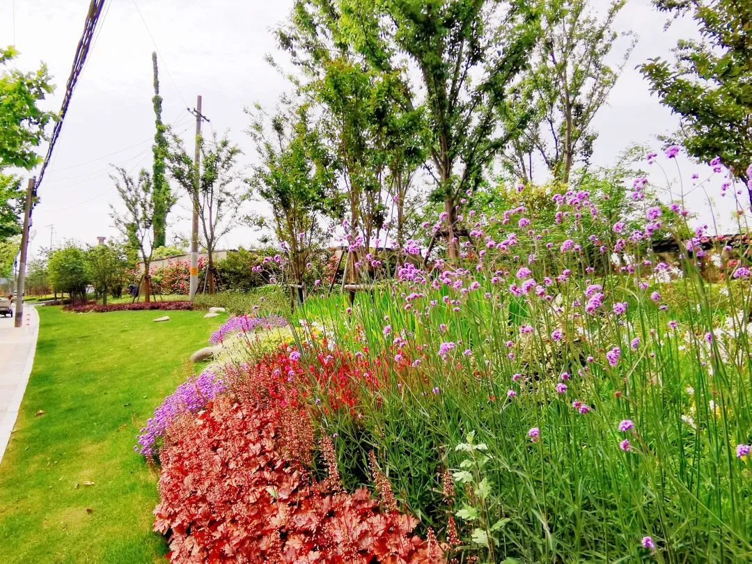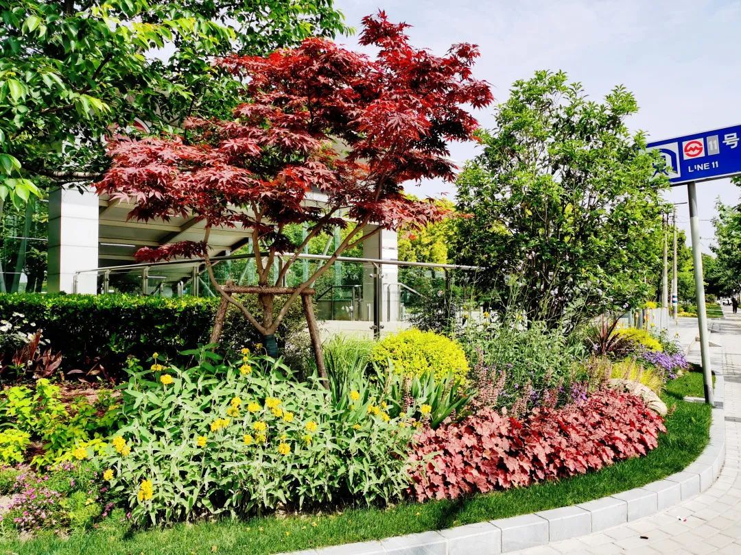 真南路(祁连山路—武威路)是普陀一条有特色的景观道路,在这条路上种植了红叶石楠、春鹃,搭配上天鹅绒紫薇、金桂、晚樱等彩色植物,色彩缤纷,别有一番韵味。垂直绿化带上则种有爬藤月季,待到花开满街,层次错落有致,打造出普陀花团锦簇、锦绣溢彩的景观道路美景。