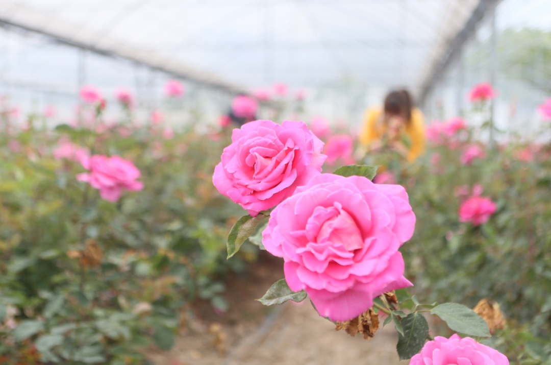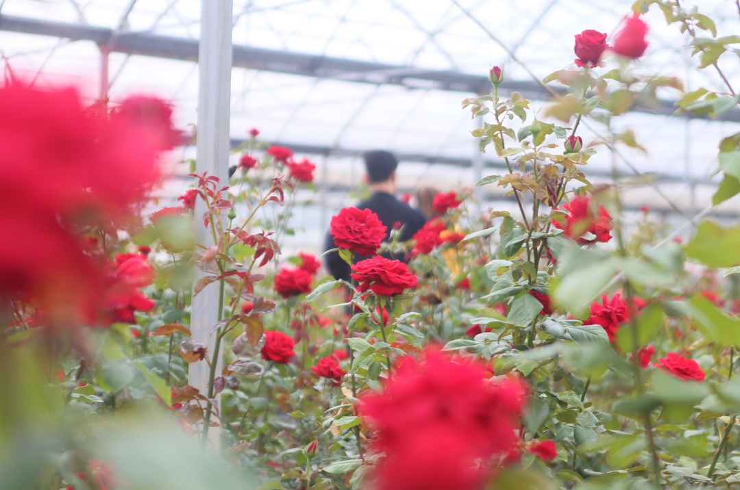 放鹤谷园艺中心占地面积166.16亩,主要以玫瑰切花、玫瑰盆栽的生产和园艺产品的展示销售为主。近期,已有约30万朵玫瑰盛开。除了赏花,游客还能到温室里自己挑选、剪下自己中意的鲜切花哦。