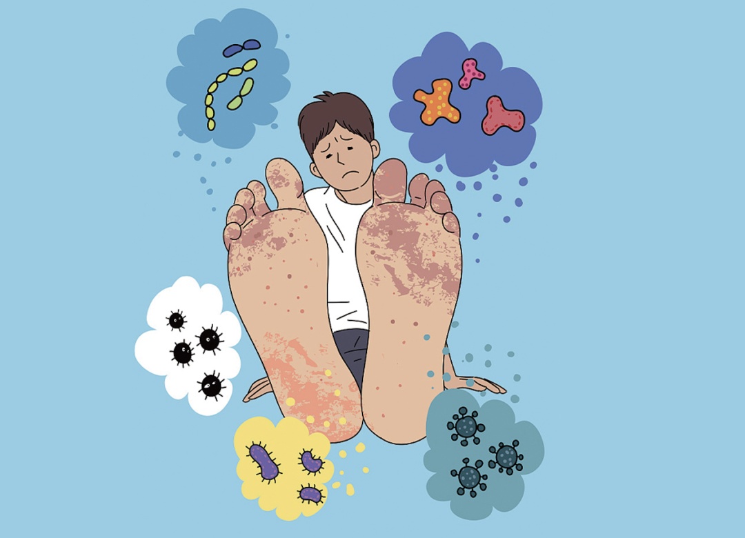 如果鞋袜透气差,脚汗多又散不出去,脚部处于一种温热潮湿的环境中,很容易滋生细菌、霉菌等,成为微生物培养皿。