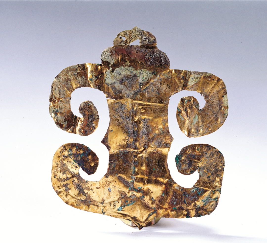 青铜戴冠纵目面具、太阳神鸟金饰、