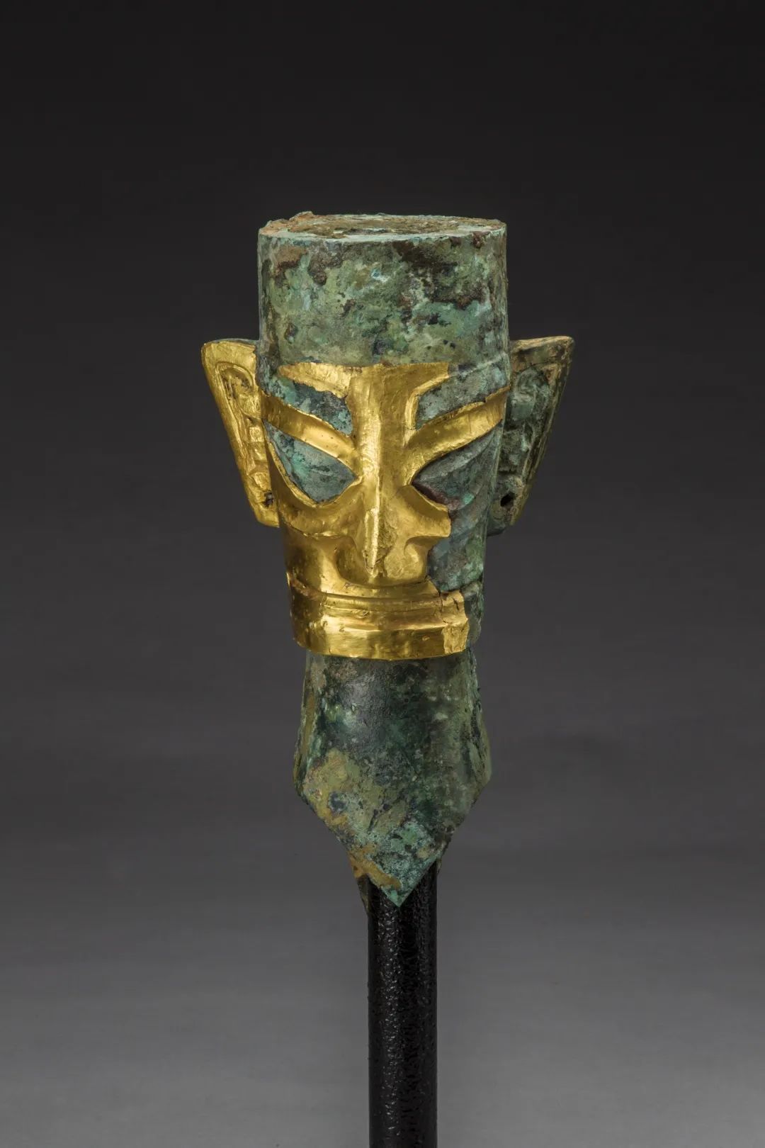 戴金面罩青铜人头像 (商)