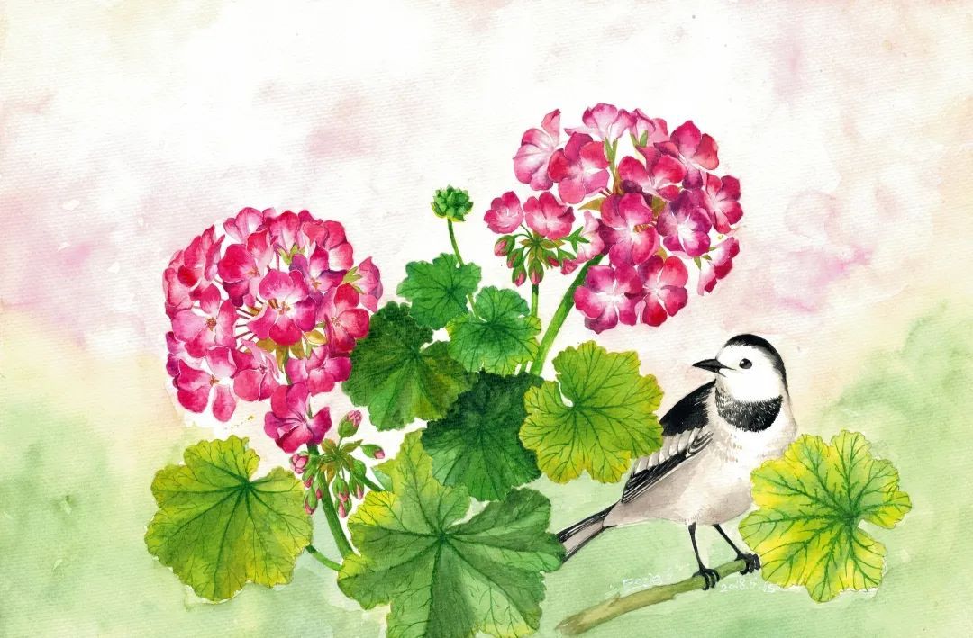 天竺葵与白鹡鸰 王紫作品