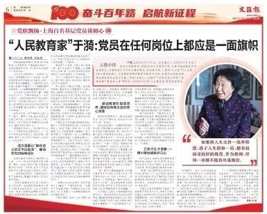 文汇报“奋斗百年路 启航新征程”专栏刊发于漪老师报道