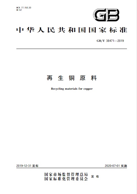 在全国标准信息公共服务平台(网址:http://std.samr.gov.cn/),可查询国家标准GB/T38470-2019 《再生黄铜原料》和国家标准 GB/T38471-2019《再生铜原料》全文,国家标准 GB/T38471-2019《再生铜原料》在再生铜原料的分类、技术要素、试验方法、检验规则、标志、包装、运输、贮存、质量证明书及订货单(合同)等内容均做了详细规范定。