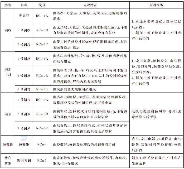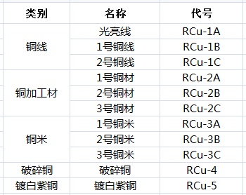 1 | 再生铜原料类别、名称及代号