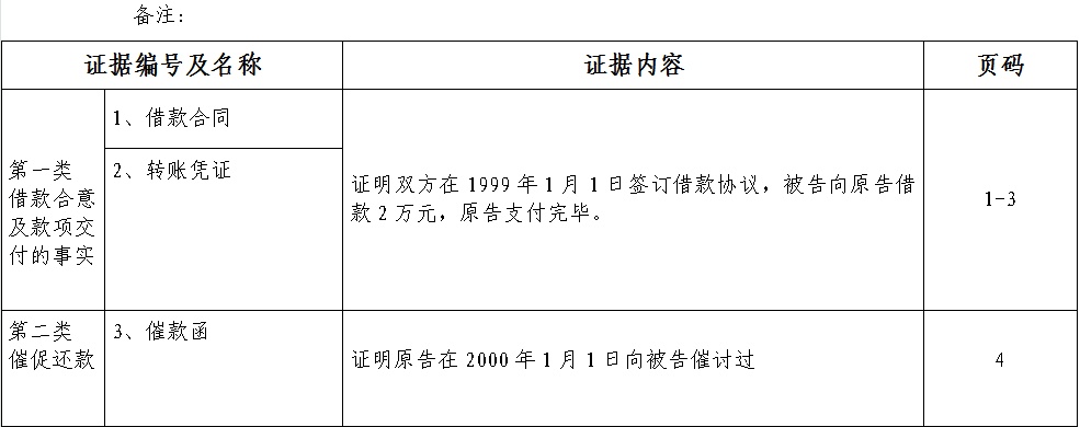 3、备注一栏:对于该证据的补充意见、证明目的意见,可以结合你方证据、或者原告其他证据填写在备注一栏。