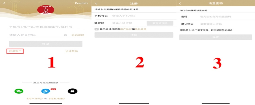 首次登录需要进行注册,现只支持当事人手机号登录及一网通办账号密码登录,支付宝、微信、随申办市民云三种登录方式暂未开通。