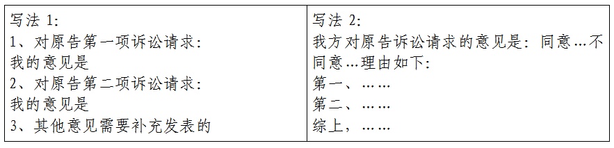 答辩意见/代理意见/述称意见