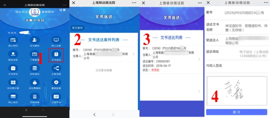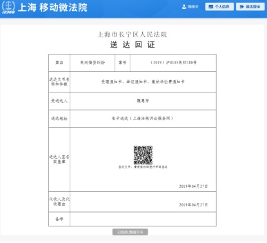 用微信扫描二维码后,进行签名,提交后即可查看送达材料。