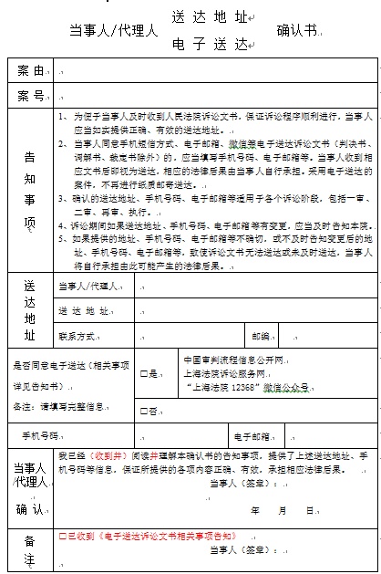 “上海法院在打造智慧法院过程中,借助科技手段实现即时对接、沟通、送达,并推进全流程网上办案,如果您觉得提交材料不方便的话,可以同意法院电子送达给您、同时您也可以通过网络或手机端方式提交材料给我们,节约邮寄时间和成本……”