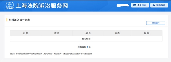 在案件列表中选择对应案号操作,如没有,选择其他案件,这里选择其他案件。