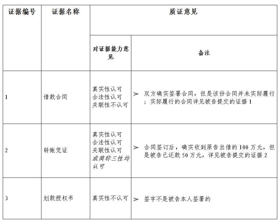 证据目录、书面质证意见、答辩意见参考样式