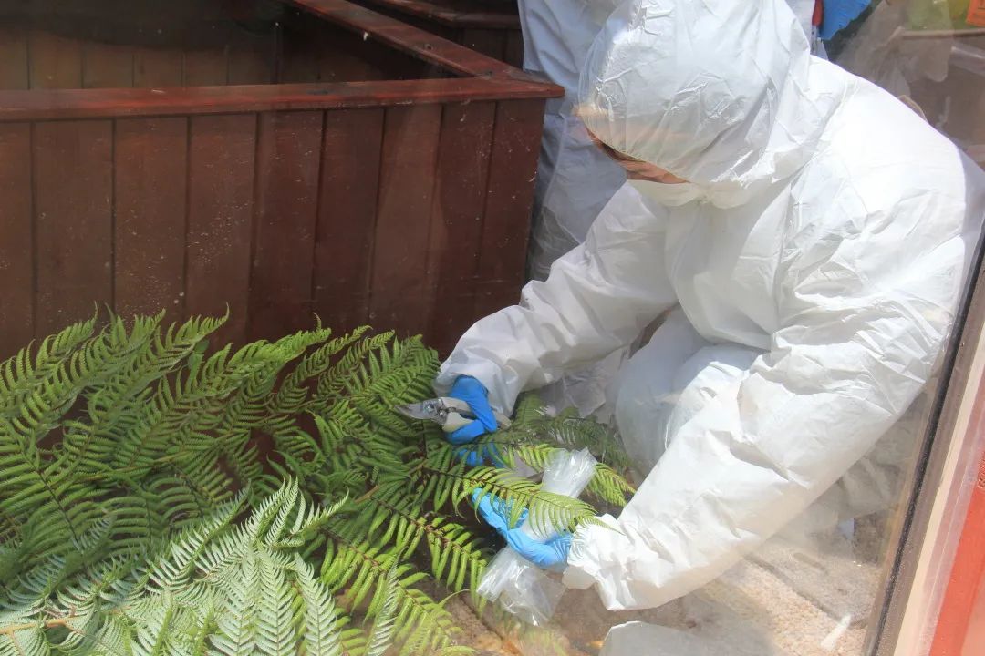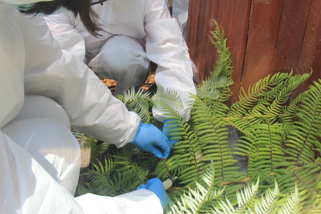 由于新西兰气候属于温带海洋性气候,银蕨对温度要求较高,最低温度不能低于10摄氏度,最合适的温度在20摄氏度左右。因为它是蕨类植物,在光照方面需要避免强光直接照射,只能接受间接光的照射;湿度方面,喜欢较为阴湿的环境,通风条件要好,但是不能种植在有较大风力的地方。基于上述环境要求,并结合检验检疫的要求,这6株银蕨被单独种植于奥克兰花园的一个房间内进行隔离,并有监控可以随时查看6株银蕨的状态。林业检疫人员在银蕨入住之前,对新西兰银蕨展馆隔离区域的环境、监测设施、消毒设备等进行现场检查,并对检查中发现的问题提出整改意见。
