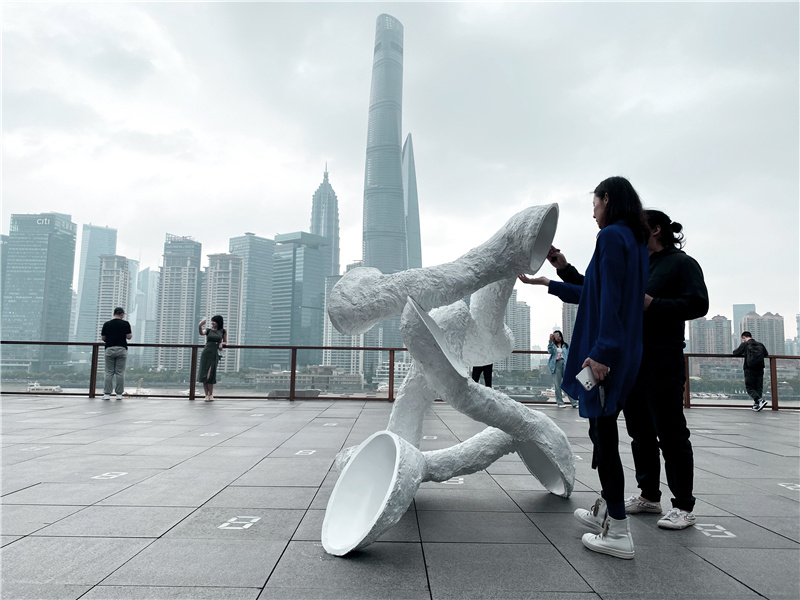 5月20日,复星艺术中心推出第一期天台艺术季,于复星艺术中心四楼“数字空中花园”为公众呈现艺术家苏畅的雕塑作品。“外滩最美露台”转变为激发思考的公共艺术场域,通过现实城市景观与充满想象艺术创作的观照,丰富公众对艺术的理解与对世界的感知。