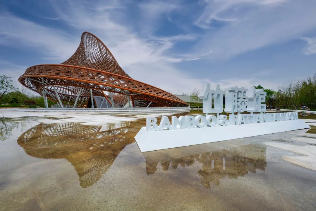 “竹藤馆,是一个不像建筑的建筑。”华建集团总建筑师沈迪告诉记者,作为展示竹藤工艺的主题场馆,结合场地景观塑造一个掩映在青翠竹园中的景观雕塑式建筑,是竹藤馆的设计初衷。为了和周边环境更好融合,设计师采取了“去建筑化”的策略:通过对墙体、屋顶、柱梁等建筑要素的消解,将场馆从建筑本身转变为一件巨大的、彰显竹藤文化特色的“展示竹器”。