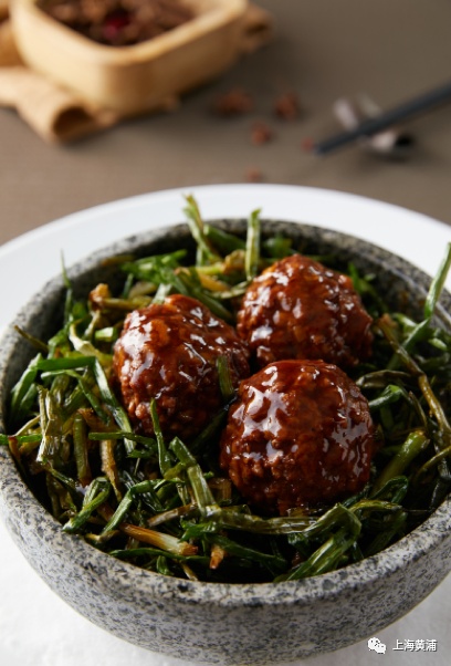 葱烧石锅狮子头