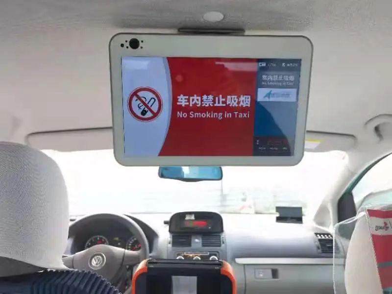 大众出租还在车厢内安装了电子屏,通过电子屏提醒乘客车内禁止吸烟。