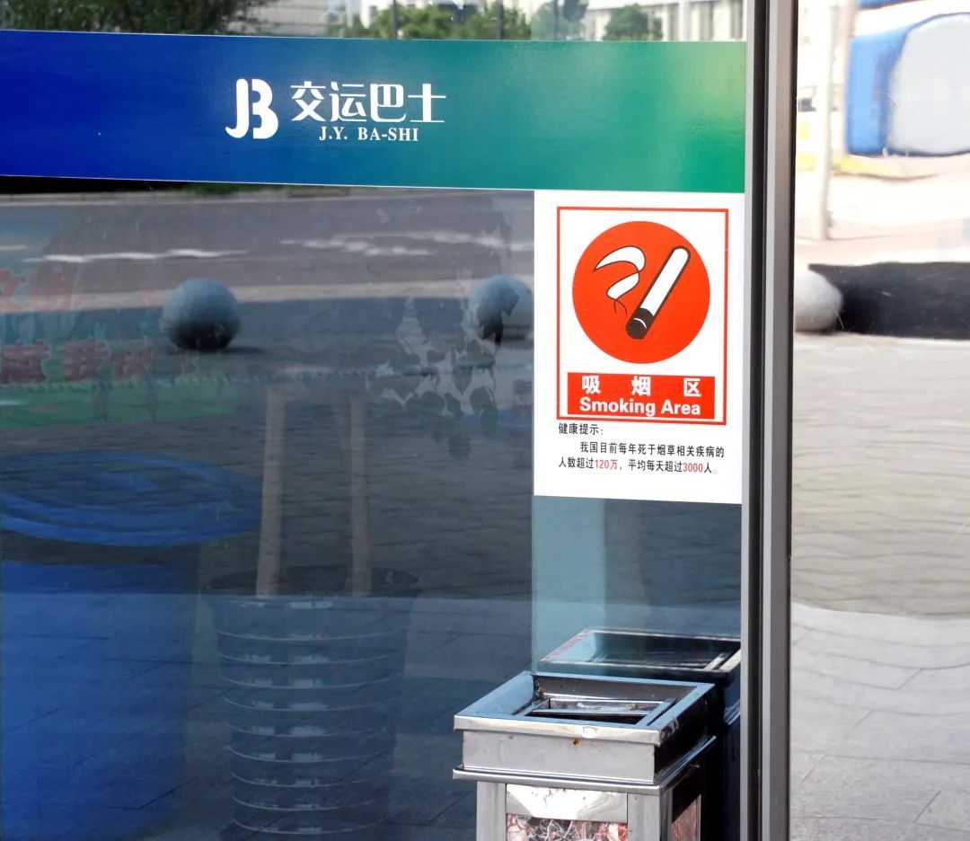 交运巴士在客运站、长途汽车内张贴禁烟标识。乘客如需吸烟,需至指定吸烟区。
