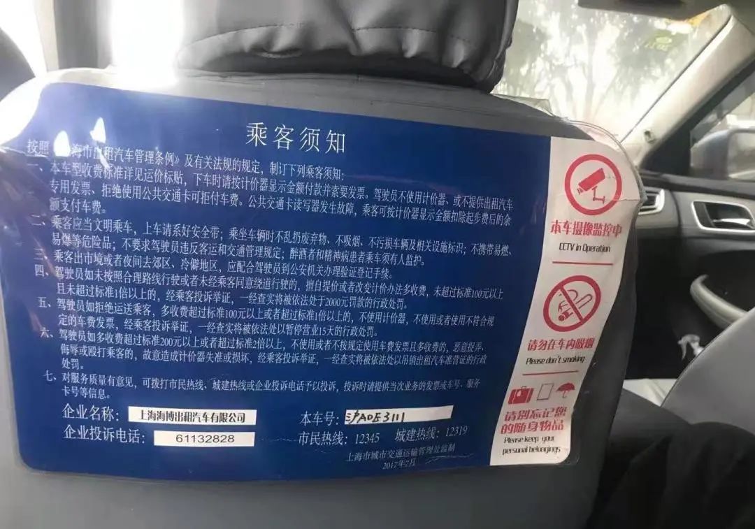 大众出租、强生出租、锦江出租、海博出租在每辆营运车辆的后排防刧板位置,张贴醒目的禁烟标志,落实行业和国家的相关规定,劝导乘客不在车厢内吸烟。