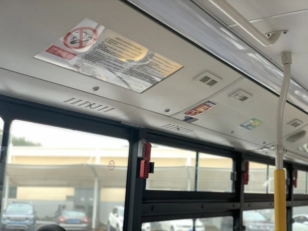 久事公交、浦东公交在终点站和营运车辆上张贴禁烟标识。