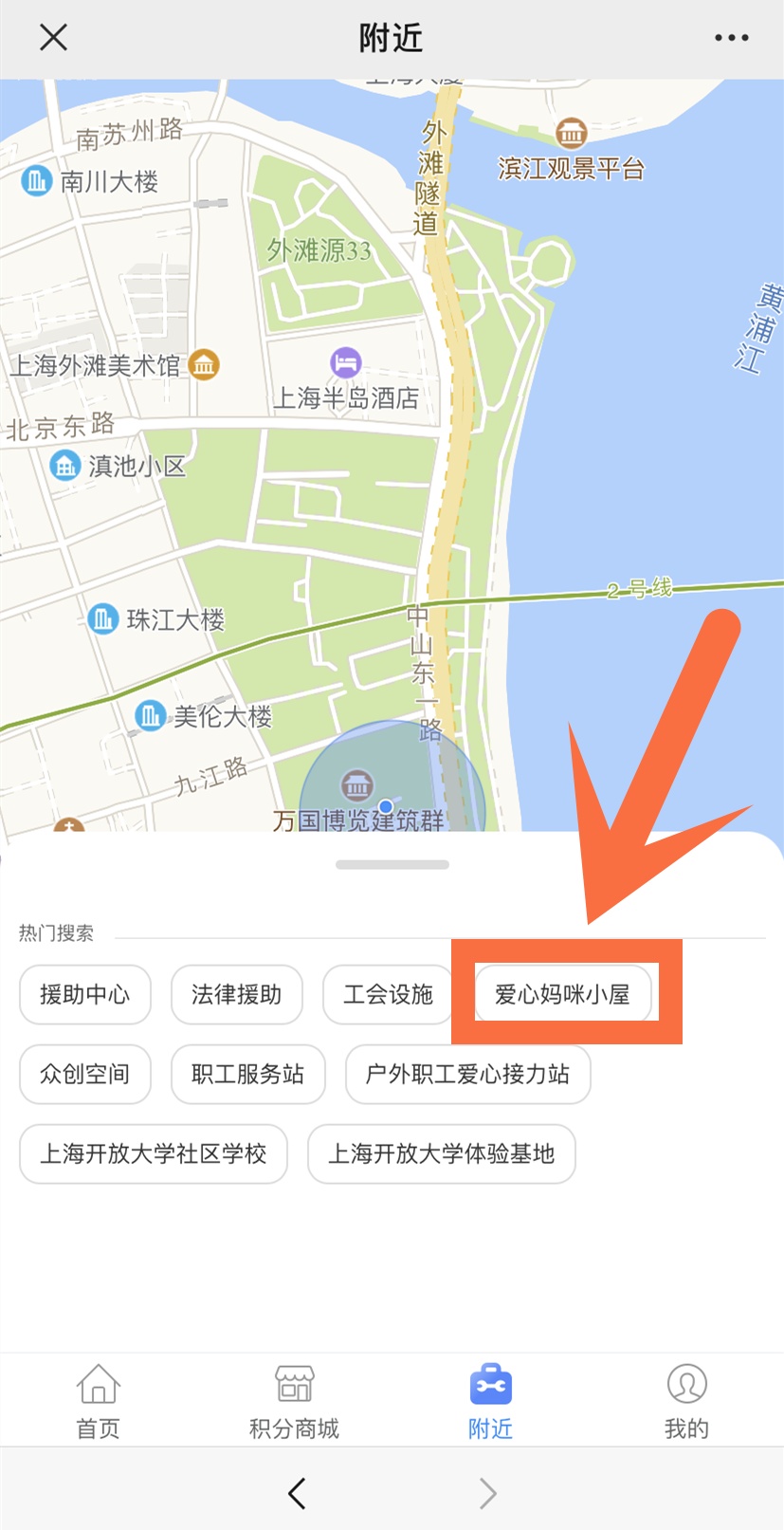 ②允许地址访问后点击【爱心妈咪小屋】即可找到附近的小屋哦