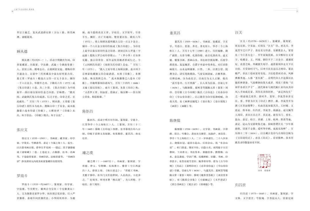 印人传略是《上海千年书法图史·篆刻卷》重要组成部分。在人类发展历史中,人是决定一切的先决因素,没有了人,上海千年书法图史也无从谈起。通过海上印人传略,我们可以了解宋元明清时期,上海篆刻有其独特的、不可取代的地位和价值。近现代上海已然成为篆刻重镇。“我们今天阐述中国近现代篆刻史,海上篆刻家群体、海上印学活动、海上印风始终是其中的一个核心话题和主要板块。”
