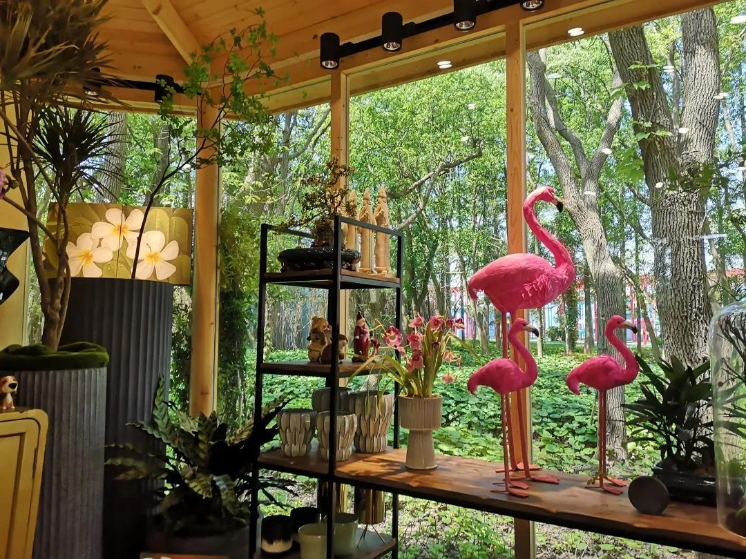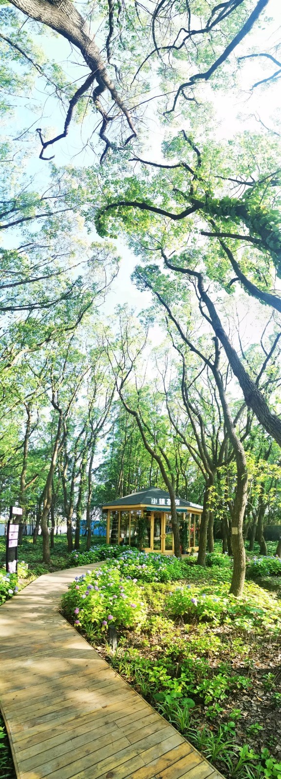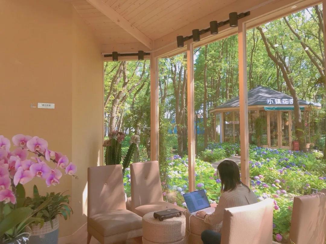 小镇花房处于花博邨香樟林中,一条木栈小道,两旁绣球花带,三五声虫鸣鸟叫。还可落座于窗前小桌,赏精品鲜花,观蝴蝶嬉戏,是闹市中难得的清净。