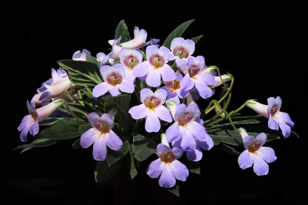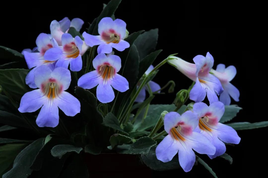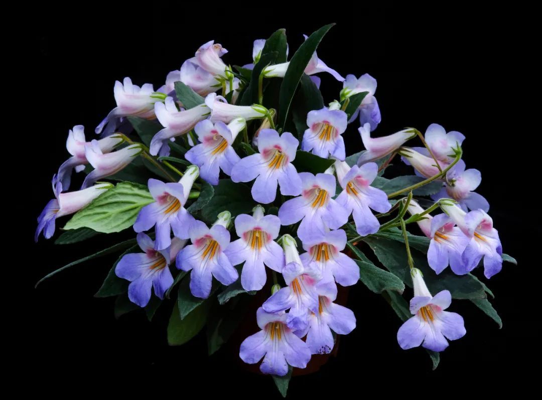 在上海植物园的苦苣苔科植物保育中心(GCCC(Shanghai))内,一株极度濒危的苦苣苔科植物——李氏报春苣苔(Primulina leeii),正处于盛花期。