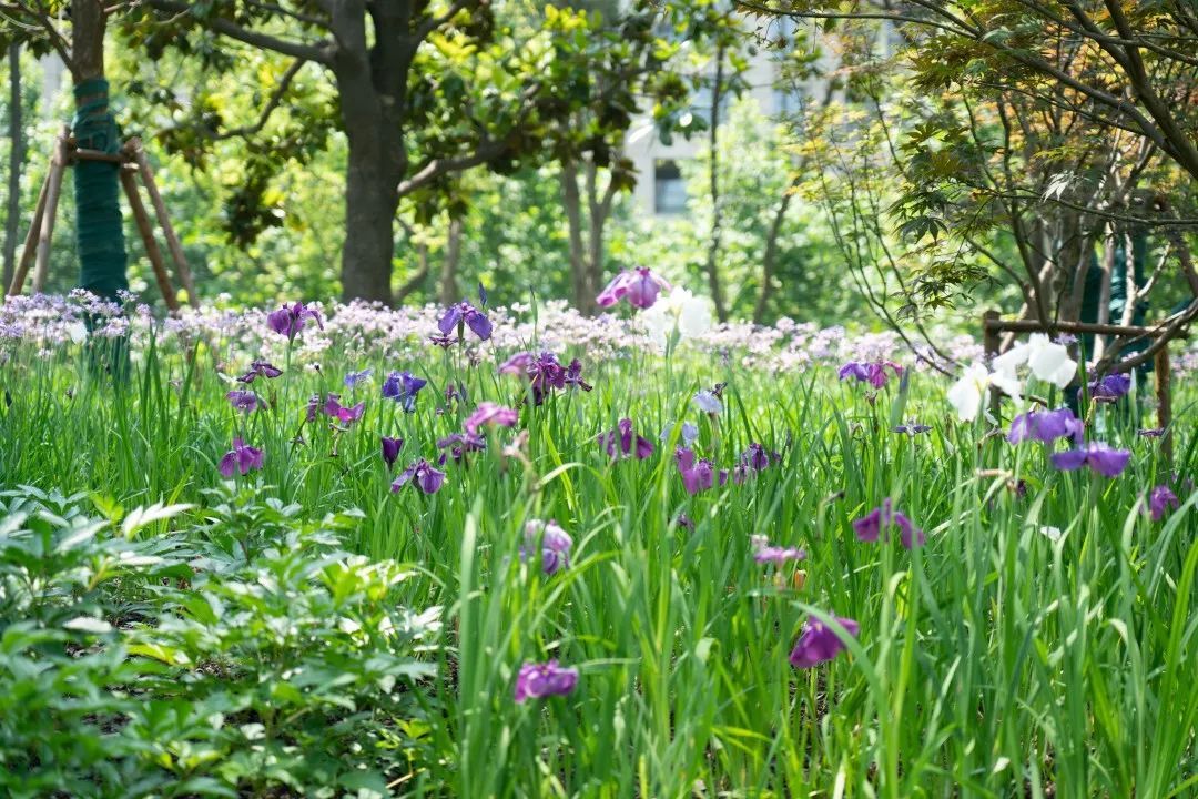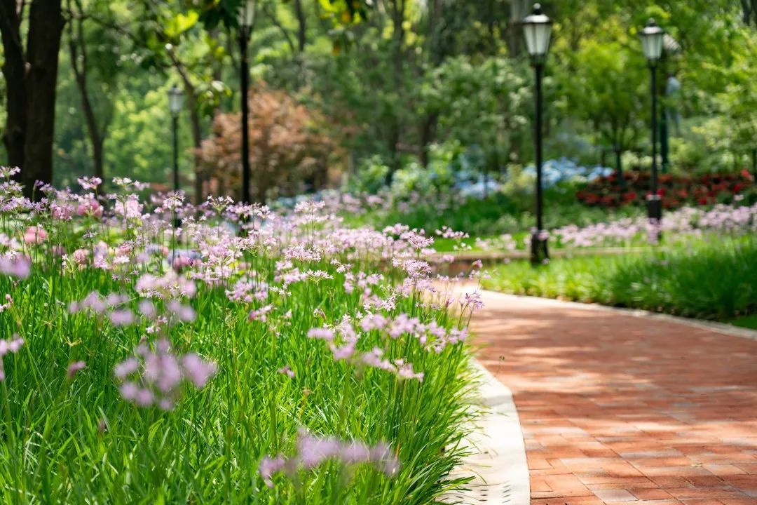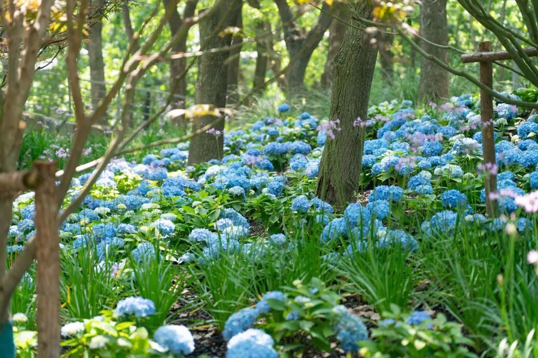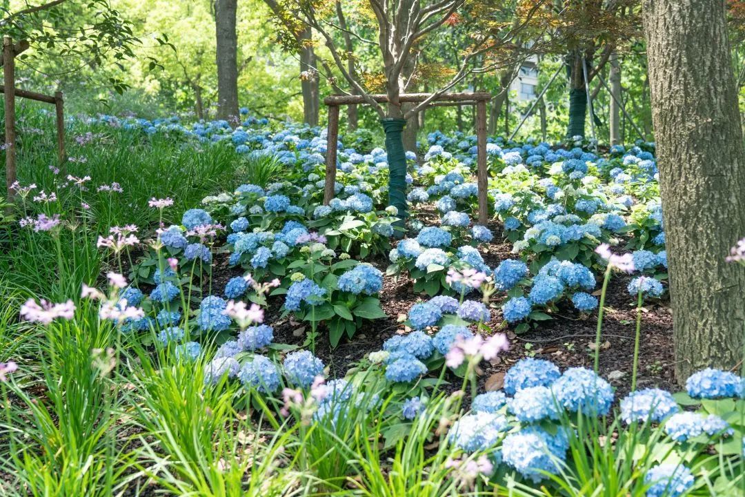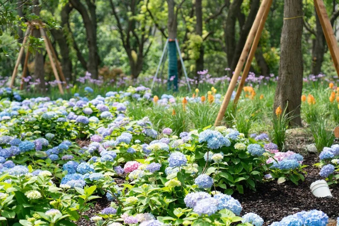 ▲林下花卉缤纷多彩,步道周边紫娇花、鸢尾花交相呼应,更有百米八仙花花带穿梭其中, 美不胜收,给市民丰富而独特的赏游体验。