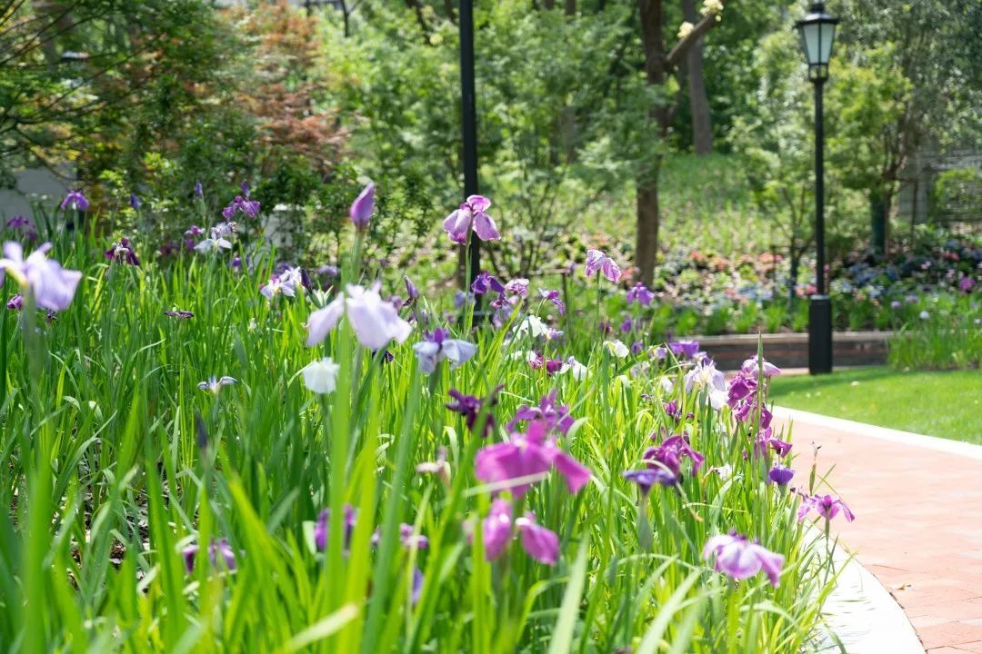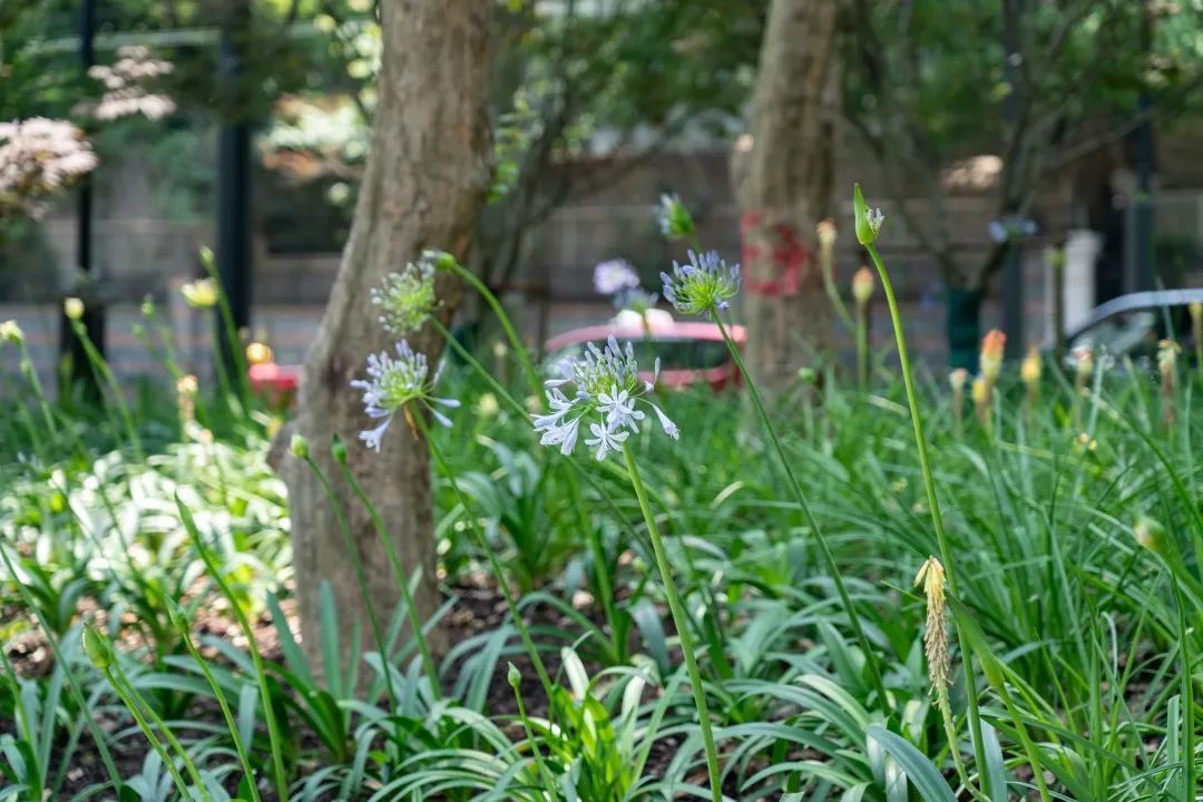 ▲现在正值八仙花、紫娇花、鸢尾花、百子莲等花卉盛放期,花卉争相绽放,百米花带美轮美奂。