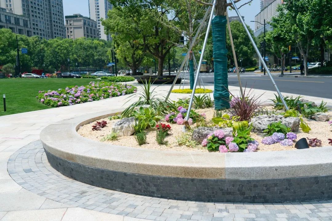 ▲百米长的八仙花带,百种花卉植物,百棵的枫香,形成规模效应的自然景观,营造出花团锦簇的太平桥绿地。