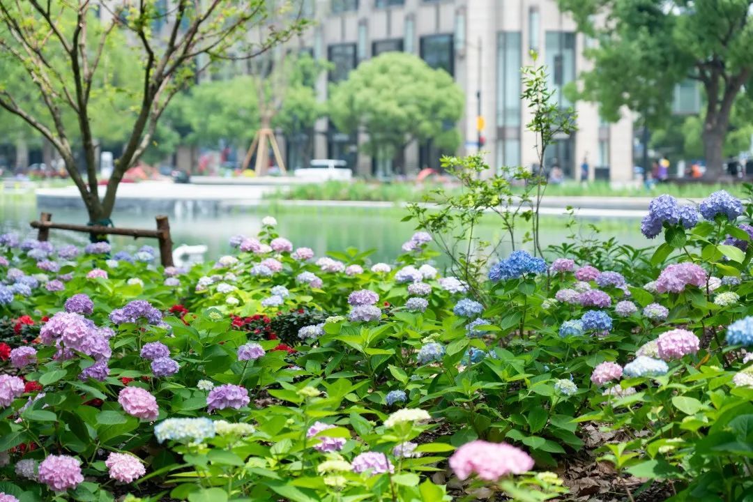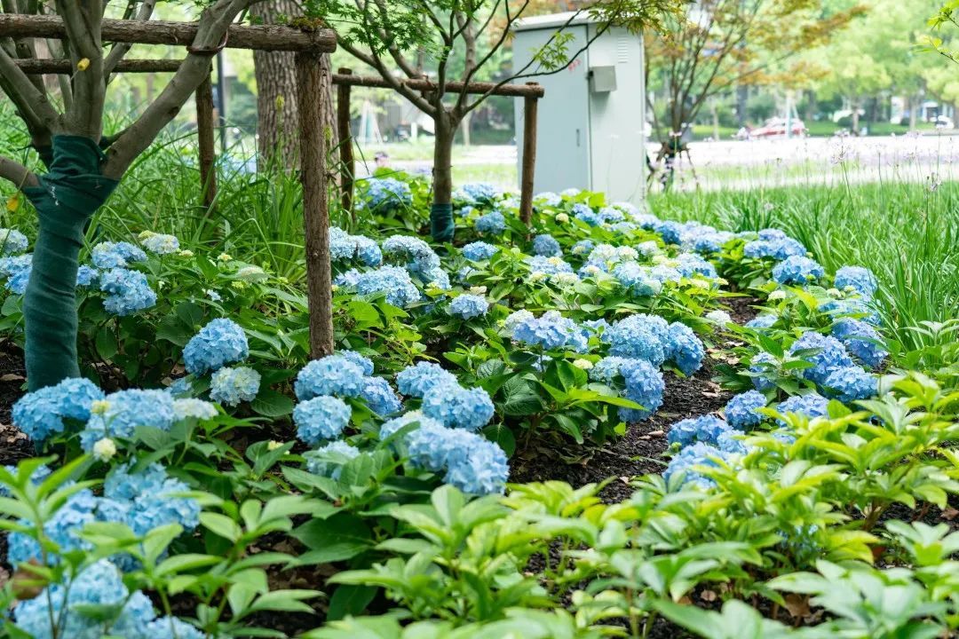 改造后的太平桥绿地呈现出焕然一新的景观面貌,现正值八仙花花期,下面就让小编带您游览花团锦簇的太平桥绿地吧!