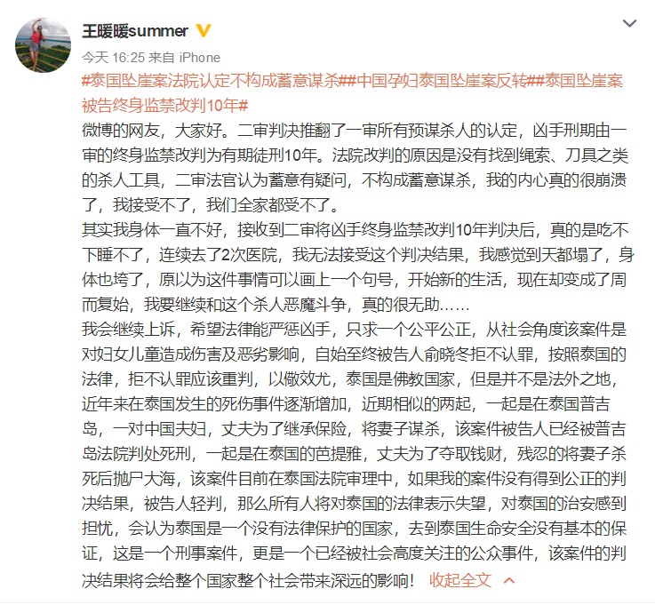 中国孕妇泰国坠崖案当事人王女士