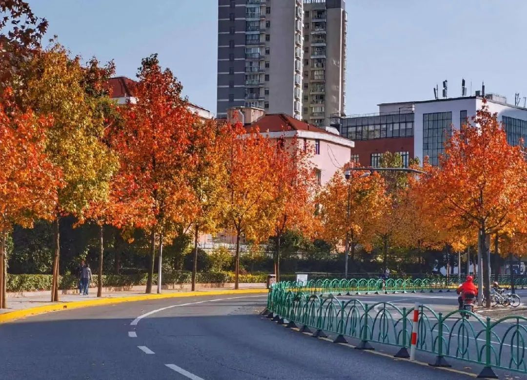 徐汇“环城公园带”为中心城周边提供了高品质绿色生态空间,同时结合周边自然条件、地域文化等要素,增加植被的季相色彩变化,更换色叶行道树,形成秋色景观大道,为市民提升游玩休憩的公共活动空间。