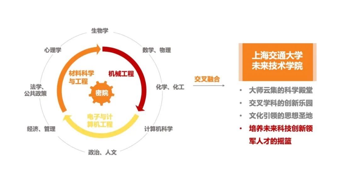 上海交通大学将依托交大密西根学院的现有基础和人才培养实践经验,整合学校相关理、工、医等优势力量,同时利用相关企业和社会的力量,打造一个学科交叉融合和高度国际化的未来技术学院。